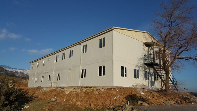 Güvenli ve konforlu konaklama imkanı sunan prefabrik yatakhane yapıları.